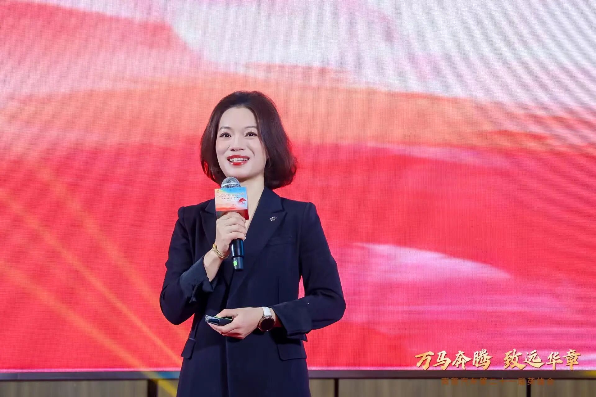 董事長 馬春欣壓軸登臺,飽含深情與遠見的分享。她以19張老照片為引,帶領全場穿梭時光,重溫了南菱28年櫛風沐雨的發展歷程;用18組關鍵詞,提煉汽車市場風云變幻下,南菱2025年轉型的積淀與成績;用22個真摯感謝,致敬每一位南菱人的奮斗與堅守。她從業務攻堅、風控管理、品牌生態、客戶體驗與人才建設等多維度,部署了公司2026年十大重點工作,號召全體南菱人以“萬馬奔騰”之姿攻堅克難,共同奔赴高質量發展新征程。